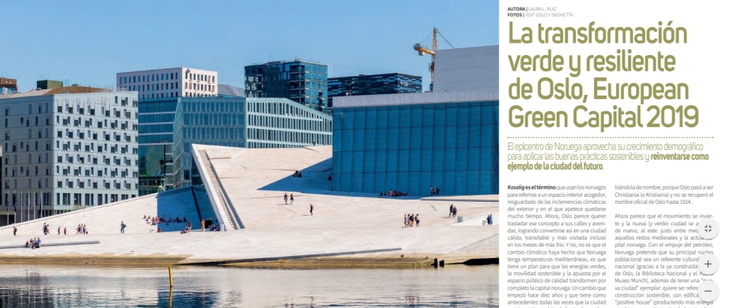 Reportaje a seis páginas sobre la nominación de Olso como Capital Europea Verde 2019 en el número 35 de la revista Ciudad Sostenible. Cobertura completa del viaje de prensa en la capital noruega.